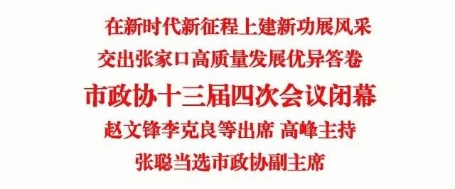 2月1日上午,政协张家口市第十三届委员会第四次会议圆满完成各项议程,在张家口国际会展中心闭幕。会议号召,全市各级政协组织、政协各参加单位和广大政协委员,要更加紧密地团结在以习近平同志为核心的中共中央周围,在中共张家口市委的坚强领导下,解放思想、担当作为,同心同德、团结奋斗,为在中国式现代化新征程上交出高质量发展优异答卷作出政协新贡献!