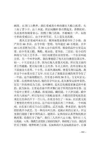 一年庙。这个庙规模较大,共有老小和尚 50 多人。方丈叫宏元,